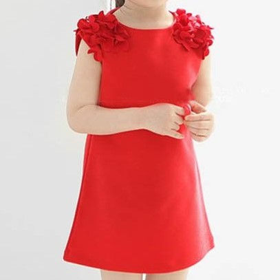 Girls Flower Cluster Tee-Shirt Dress -Red