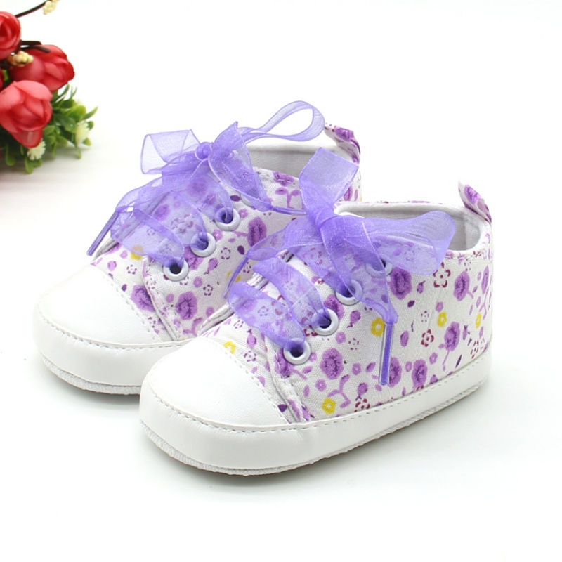 Soft Sole Crib Shoe with Anti-Slip Bottoms - Purple